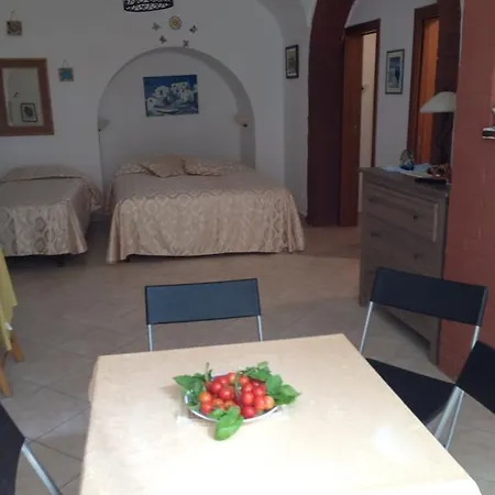 Das 1-Zimmer-Apartment Ferienwohnung Il Raggio liegt 13 Gehminuten vom Starnd Da Luigi Ai Faraglioni entfernt und verfügt über einen Balkon und eine Sitzecke. Das Apartment hat auch eine Terrasse mit Blick auf den Garten.
